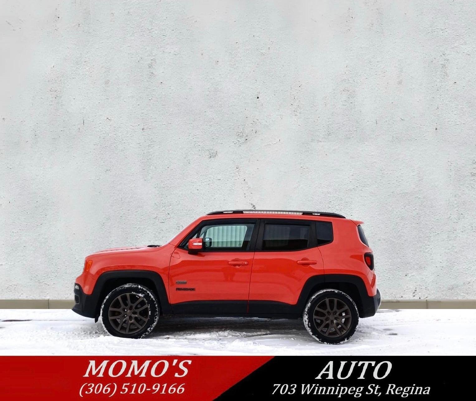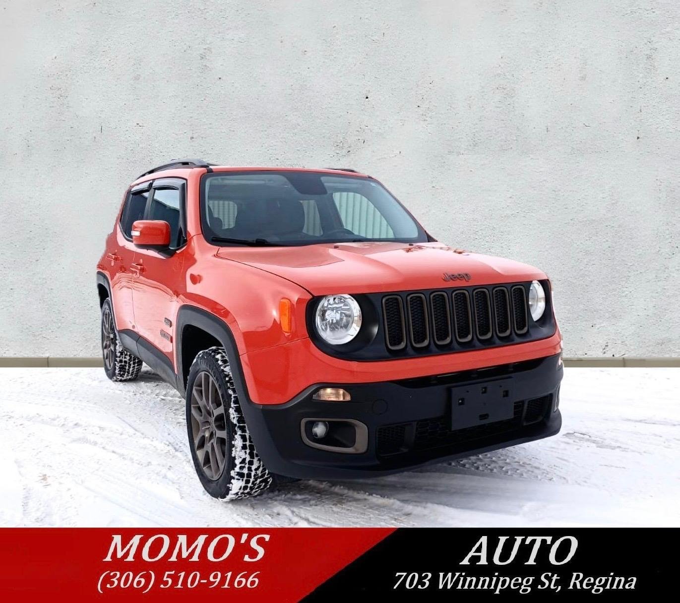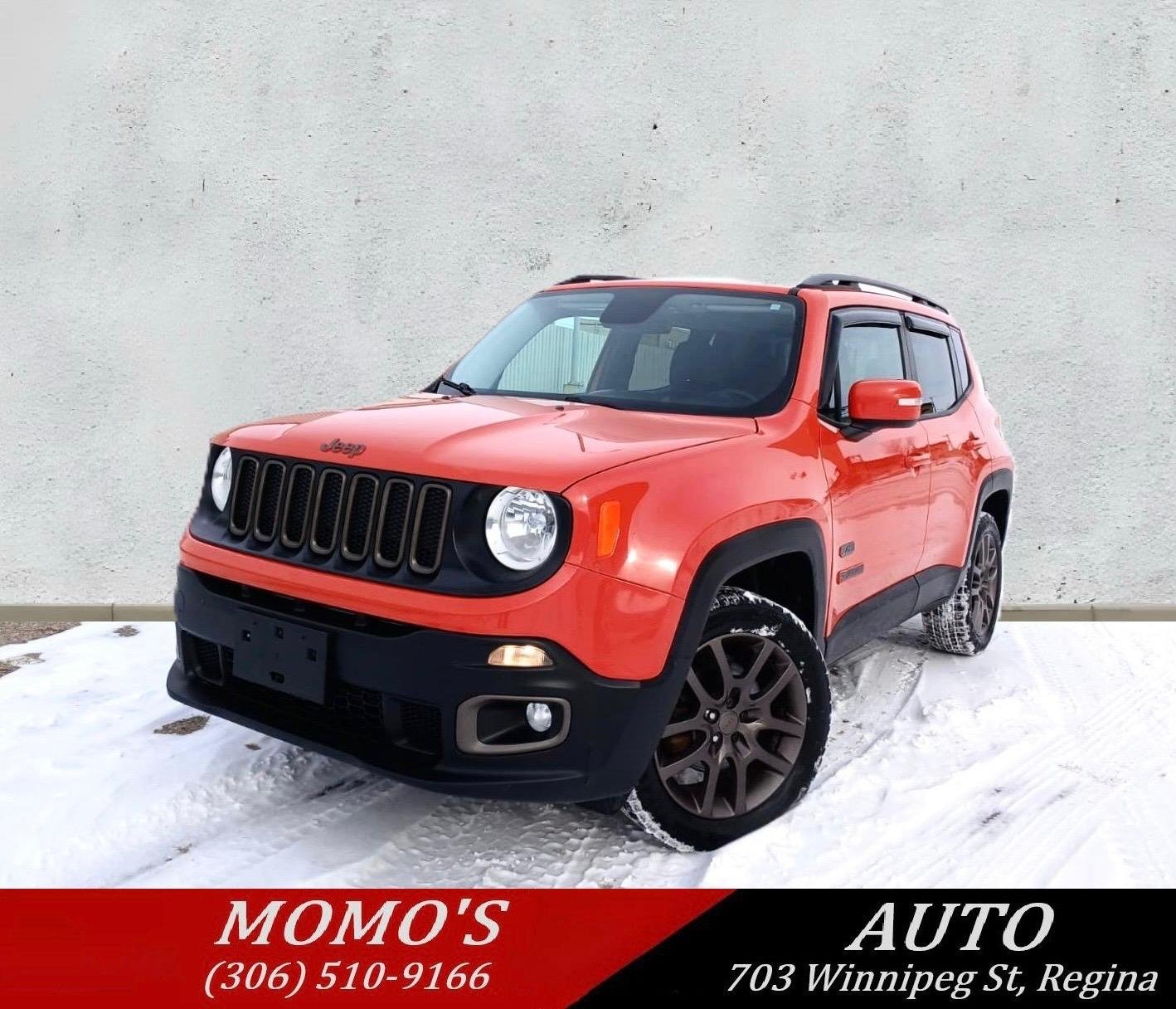 2016 Jeep Renegade 75TH-Anniversary Edition 4x4 SUV. Has 203,000 kms. Equipped with the peppy and super fuel efficient 2.4L 4-cylinder engine. Automatic. Good reliable Jeep, runs and drives great!